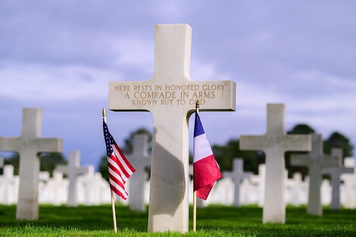 The tour concludes at the Normandy American Cemetery, overlooking Omaha Beach. More than 9,000 white crosses and Stars of David honor the American soldiers who lost their lives during the Normandy campaign. It is a place of silence, reflection, and deep respect, where individual stories transform historical facts into human memory.