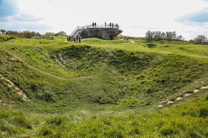 The experience begins at Pointe du Hoc, where U.S. Army Rangers carried out one of the most daring assaults of D-Day. Here, dramatic cliffs, bomb craters, and concrete bunkers remain exactly where history left them. Walking across this site provides a striking sense of the scale, danger, and determination involved in the operation.